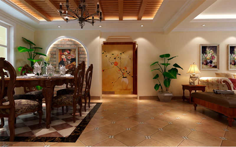 - 設計中造就了其自在、舒適的生活方式,以舒適機能為導向,兼具古典的造型與現(xiàn)代的線條、沒有太多造作的修飾與約束,使整個空間帶有鄉(xiāng)村氣息,還不能缺乏自在感與情調感??蛷d作為待客區(qū)域,要求簡潔明快不失大氣,同時裝修較其它空間要更明快光鮮,不要過多累贅復雜的造型,體現(xiàn)了主人的內蘊品性。